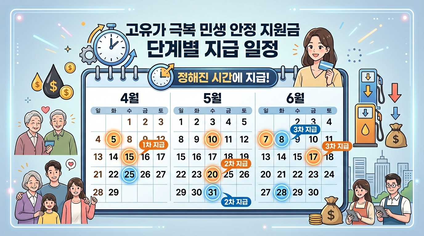 고유가 피해지원금 지급일은 대상자에 따라 두 단계로 나누어 진행됩니다. 추경 통과 시점에 따라 변동될 수 있으므로, 정부의 최종 발표를 예의주시해야 합니다.
