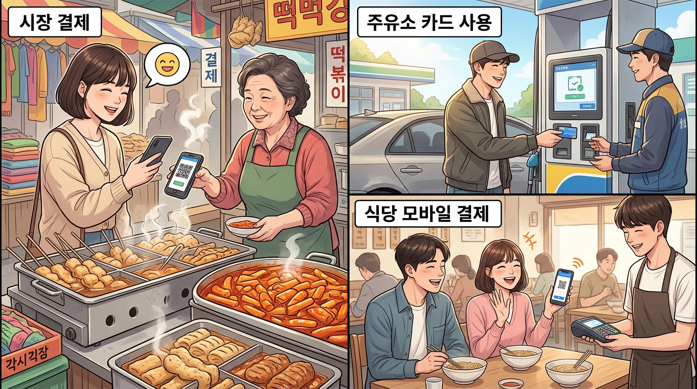 - 사용 가능: 전통시장, 동네 마트, 지정된 주유소, 지역 음식점, 병원 등 지역화폐 가맹점 및 소상공인 상점