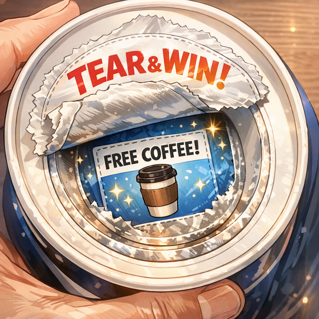 오픈 기념으로 진행되는 'Tear & Win' 이벤트를 놓치지 마세요. 라지 사이즈 음료를 주문하면 컵 하단에 숨겨진 깜짝 선물을 확인할 수 있습니다.